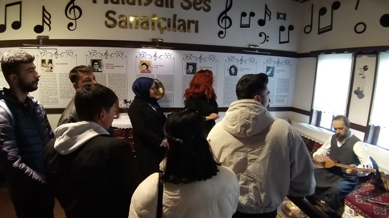 A group of students accompanied by Radio, Television and Cinema Department faculty members Assoc. Prof. Dr. Vefalı ENSER and Assoc. Prof. Dr. Mevlüde BATUR visited the Malatya Culture House located in Art Street. The students met the historical items exhibited in the local rooms such as various hand embroidery, apricot room belonging to the old life, which reflects the local culture of Malatya, combining lifestyles, traditions and customs in the Malatya Culture House. The students, who also saw the special rooms where wax sculptures and personal belongings of Malatya artists are exhibited, expressed their satisfaction with the culture house where the local cultural elements of Malatya, which are about to disappear, are kept alive and thanked the staff of the culture house.