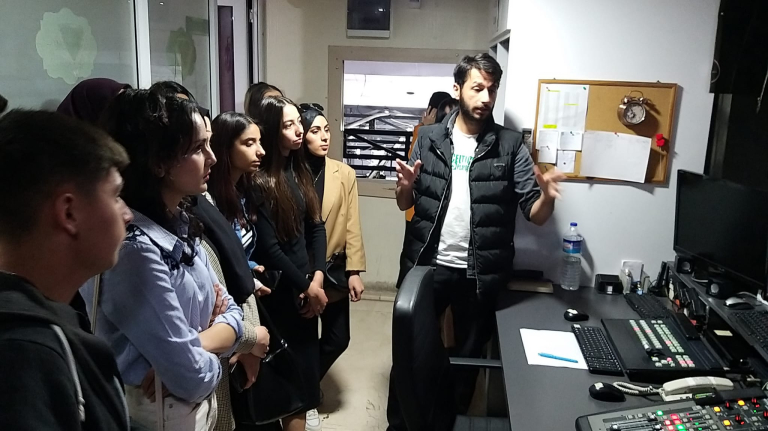 Radyo Televizyon ve Sinema Bölümü Bölüm Başkanı Doç. Dr. Vefalı ENSER'in koordinatörlüğünde ve verdiği "Radyo Televizyon Yayıncılığı" dersi kapsamında gerçekleştirilen teknik gezide Malatya Vuslat TV Genel Müdürü Beril Dane ÇUHACI, kanalın haber spikeri ve video editörü Sefa KARAKUŞ ve yönetmen Abdülkadir YAVUZ, öğrencilere Vuslat TV'nin ana stüdyosunu, reji bölümünü, haber merkezini tanıttılar. KARAKUŞ, ana stüdyo ve stüdyonun donanımı, teknik işleyiş, stüdyo kameralarının özellikleri ve yayın süreciyle ilgili bilgiler paylaştı. YAVUZ, reji odasının işleyişi, kumanda masasının görevi ve yayınların takip ve kontrolü konusunda açıklamalarda bulundu. Öğrencilere televizyonculuğun önemli taraflarından ve sırlarından bahseden ÇUHACI, yerelde televizyoncu olarak yetişmek isteyen öğrencilere sektörle ilgili önemli tavsiyelerde bulundu ve öğrencilerin sorularını yanıtladı.